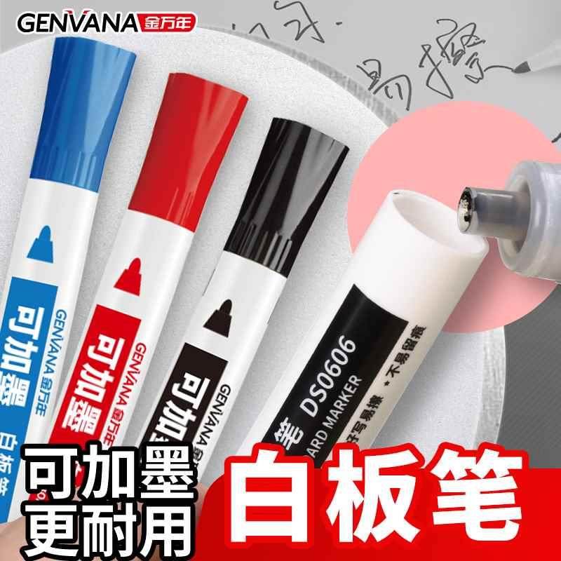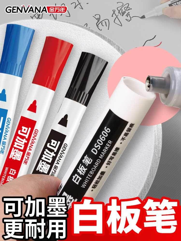 金万年白板笔可加墨水可擦大容量直液式可加墨按压笔头白板写字笔