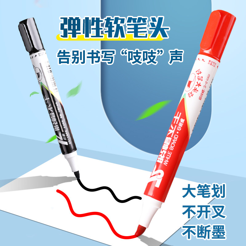 金万年软头白板笔可加墨水弹性笔头大笔划笔加粗线幅72小时脱帽不