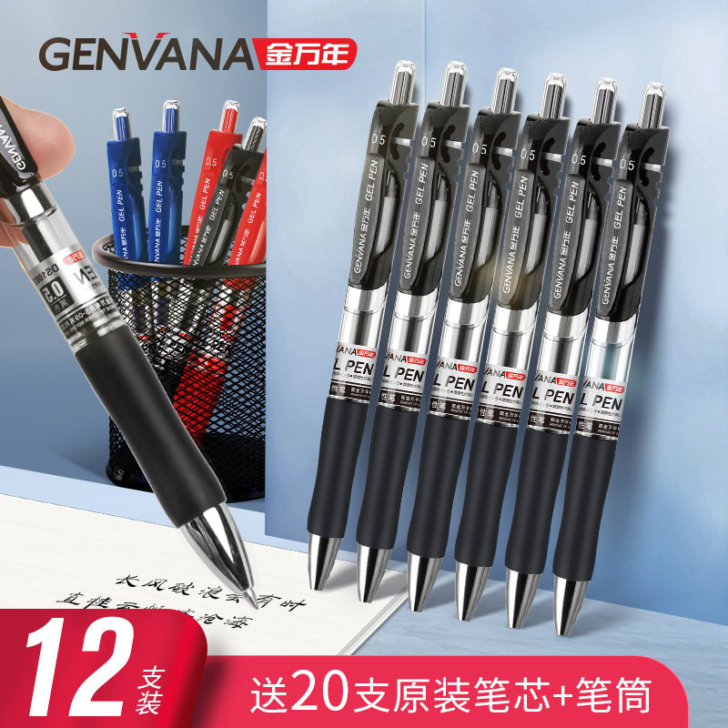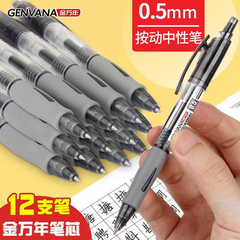 金万年按动中性笔0.5子弹头笔芯好写碳素笔黑色学生考试专用水性