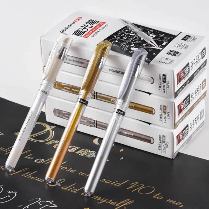 金万年高光绘画笔白色中性笔金色笔芯黑底写白字粗烫金笔1.0银色