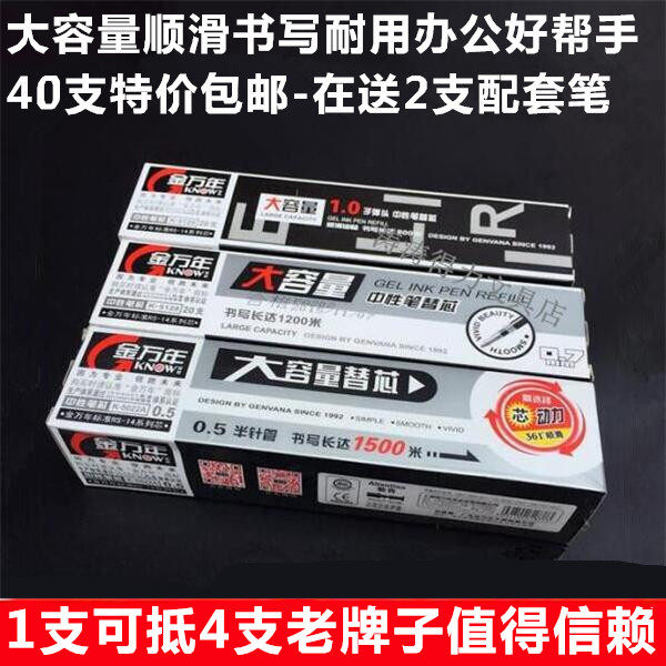 金万年办公大容量0.5 0.7 1.0mm加粗笔芯签字笔中性水笔替芯批发
