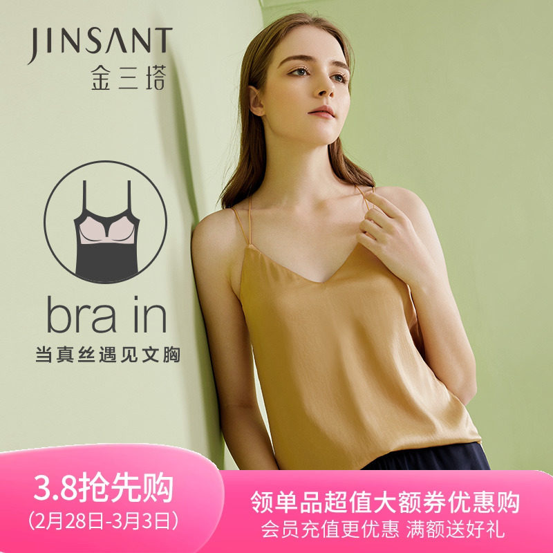 免穿文胸】桑蚕丝舒适透气弹力brain纯色背心式吊带女新品金三塔