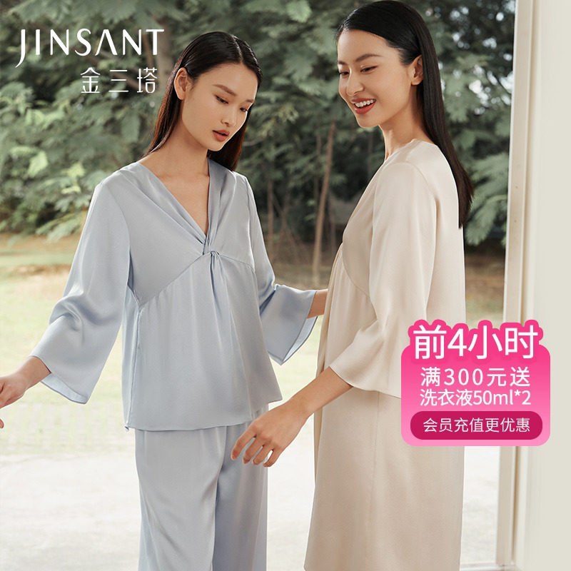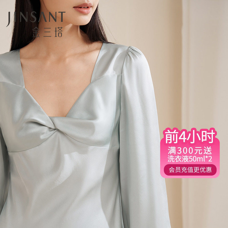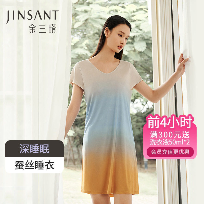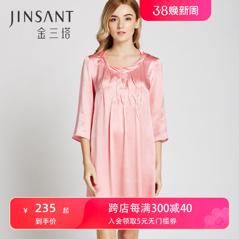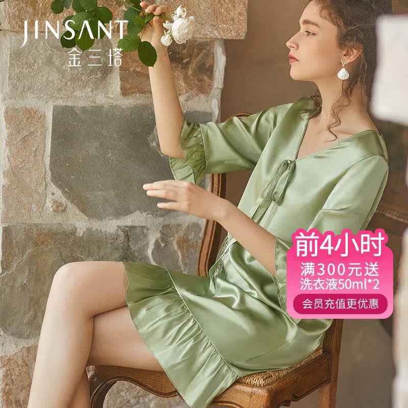 金三塔[一触难忘]丝氨酸纯色真丝睡衣女100%桑蚕丝可外穿睡裙