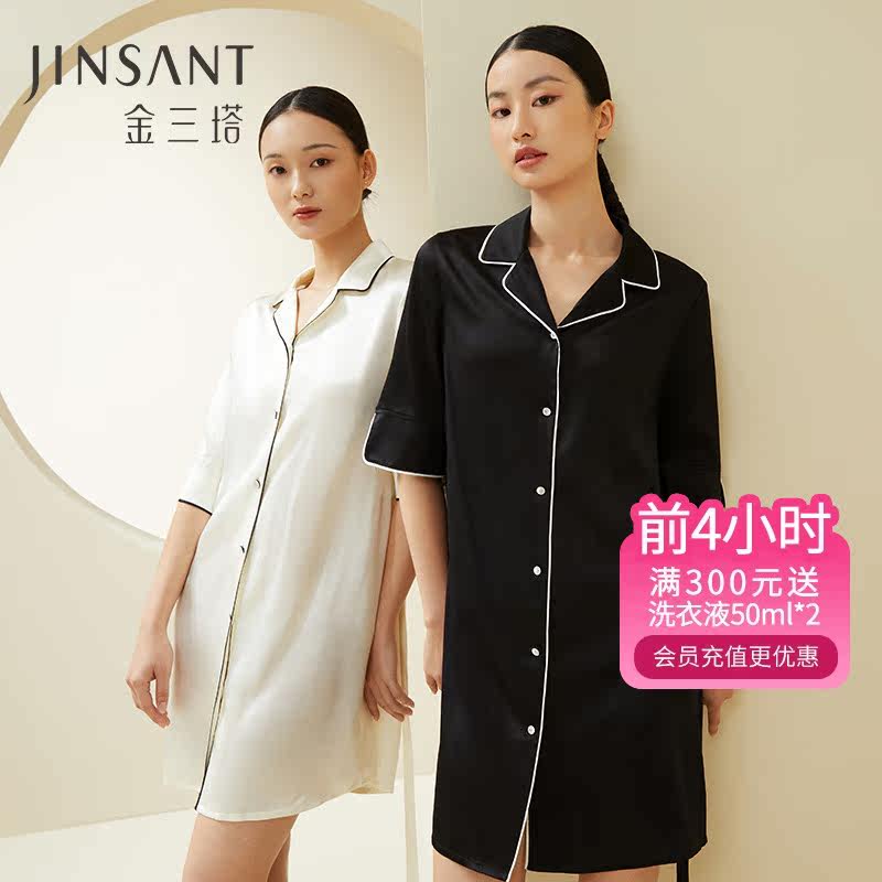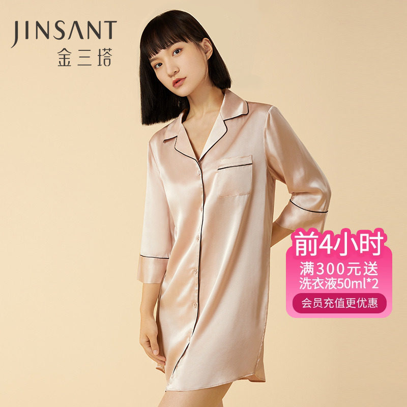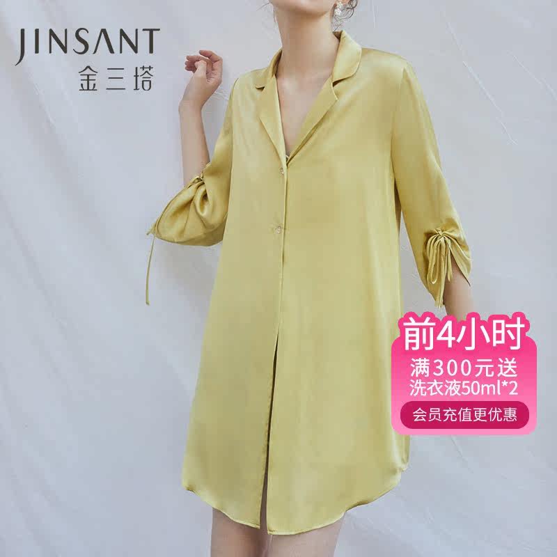 金三塔100%桑蚕丝女衬衫式睡裙 2穿式真丝翻驳领舒适时尚睡衣新品