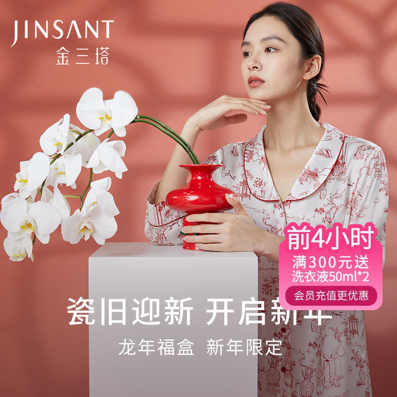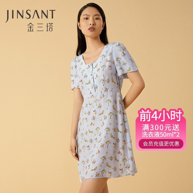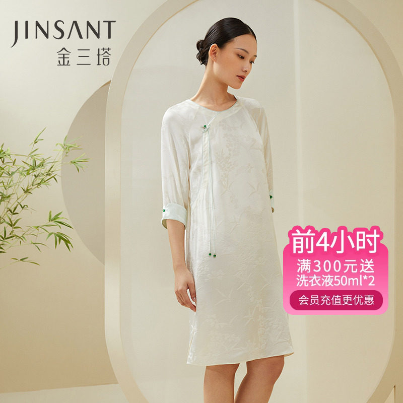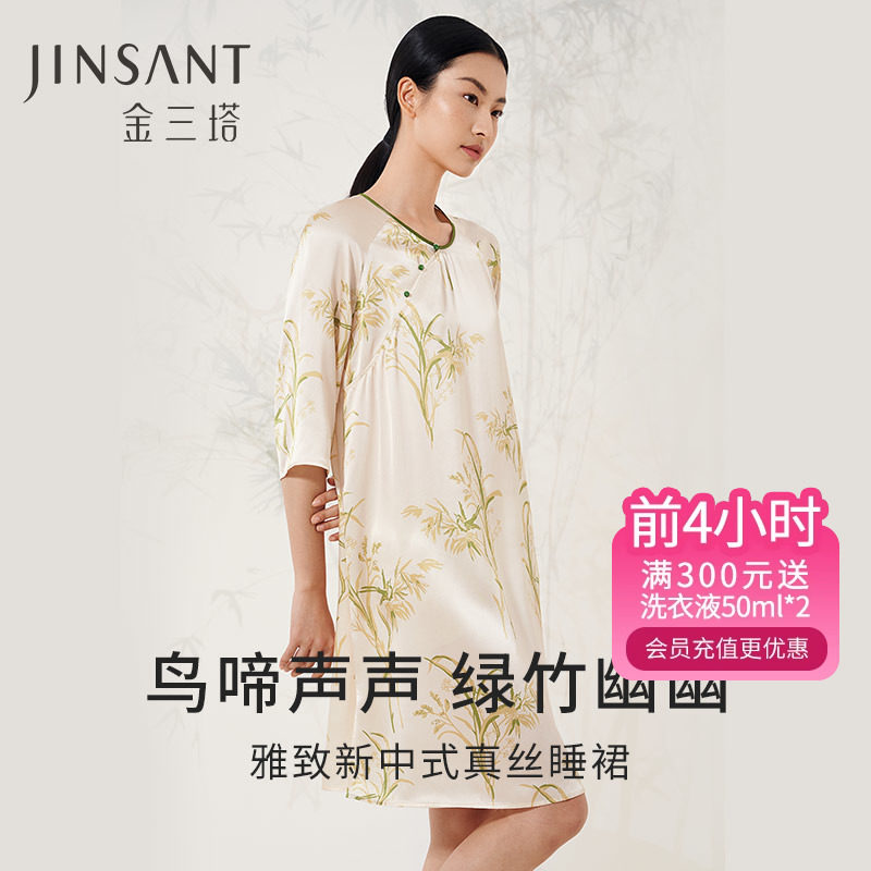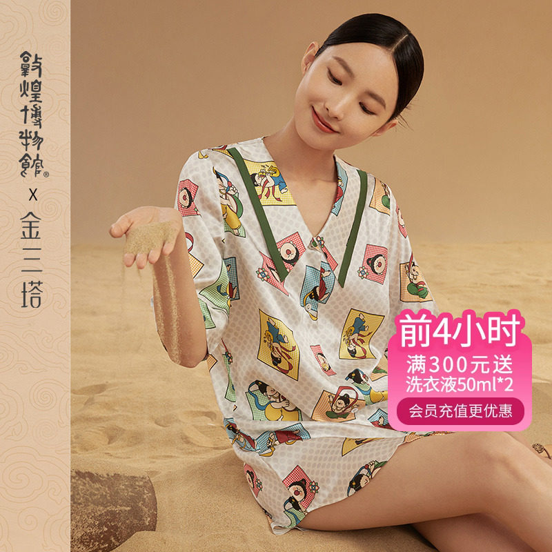金三塔塔敦煌联名100%桑蚕丝真丝时尚印花睡裙家居服女士23年新品