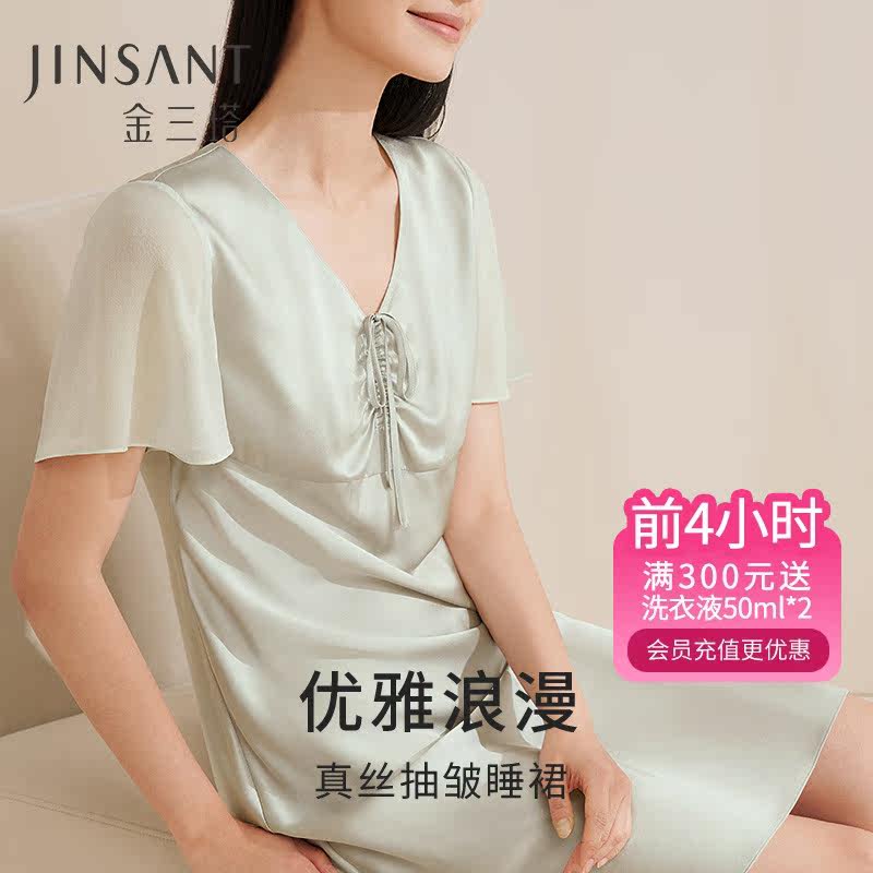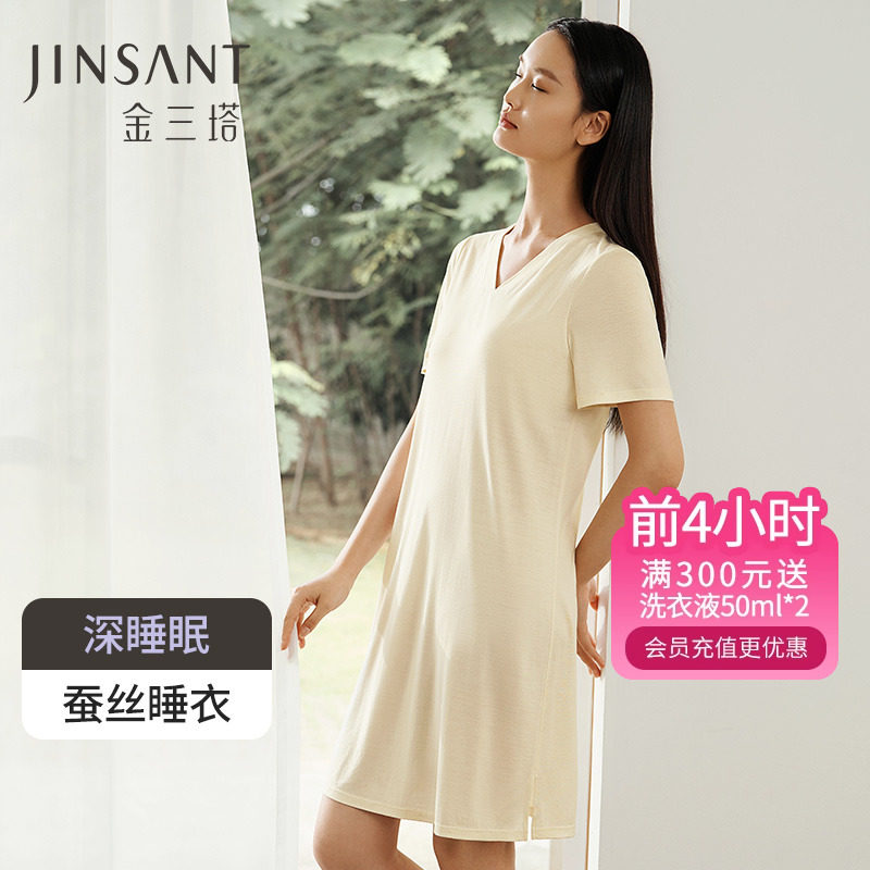 丝滑舒适] 金三塔19mm100%桑蚕丝 真丝睡衣女桑蚕丝V领真丝睡裙女