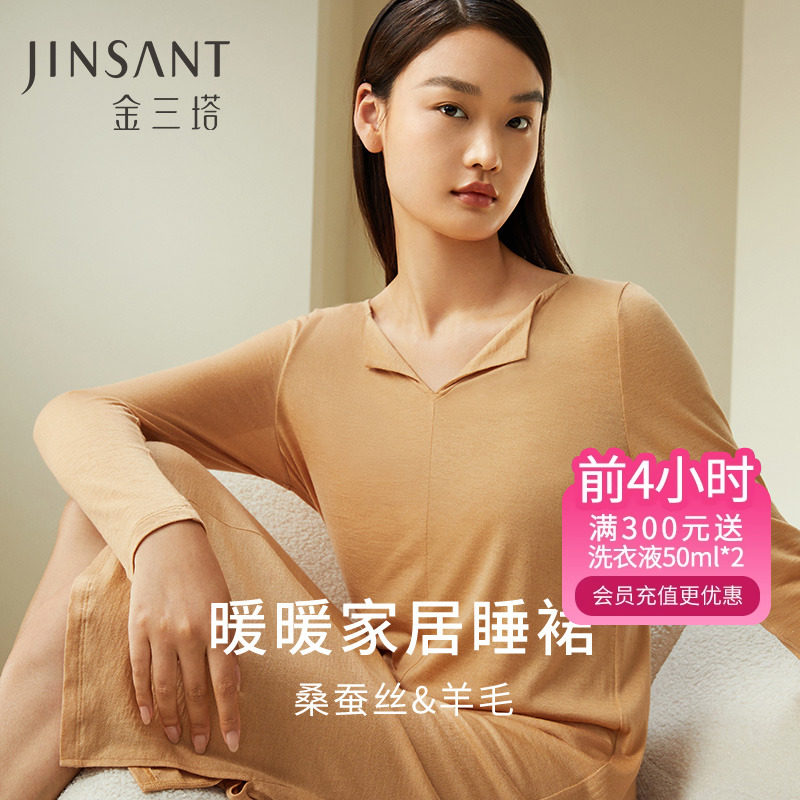 暖暖家居服】绵羊毛桑蚕丝亲肤软糯温暖不厚重裸感长袖睡裙金三塔