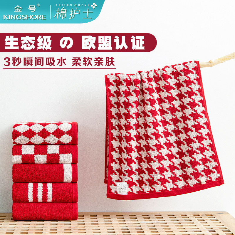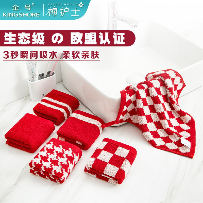 金号棉护士纯棉小毛巾吸水不掉毛洗脸小方巾红色结婚家用柔软面巾