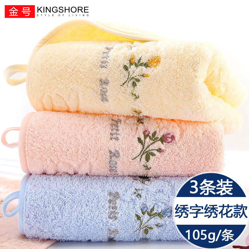 3条装金号毛巾小方巾成人纯棉正方形洗脸擦手巾挂式吸水家用厨房