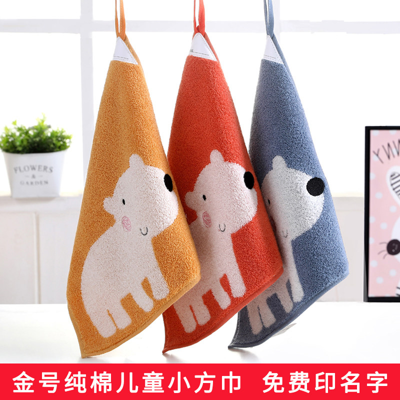 金号纯棉儿童小毛巾卡通挂式吸水擦手巾家用洗脸小方巾四方巾柔软