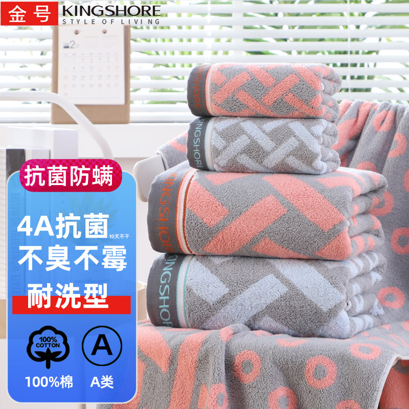 金号浴巾4A级抗菌毛巾套装3件套 家用纯棉高端加厚加大洗脸洗澡巾