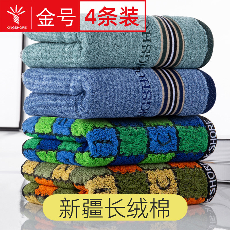 金号毛巾4条装A类无荧光纯棉面巾男女吸水洗脸大毛巾组合家庭装