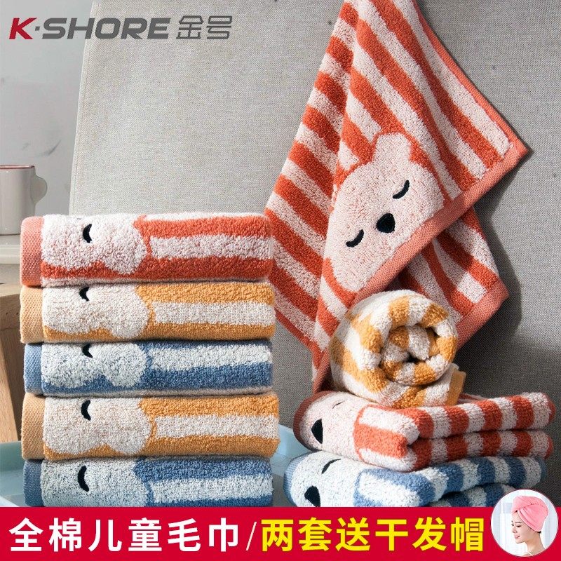 3条金号儿童毛巾宝宝纯棉软面巾卡通挂式洗脸家用洗澡擦手小方巾