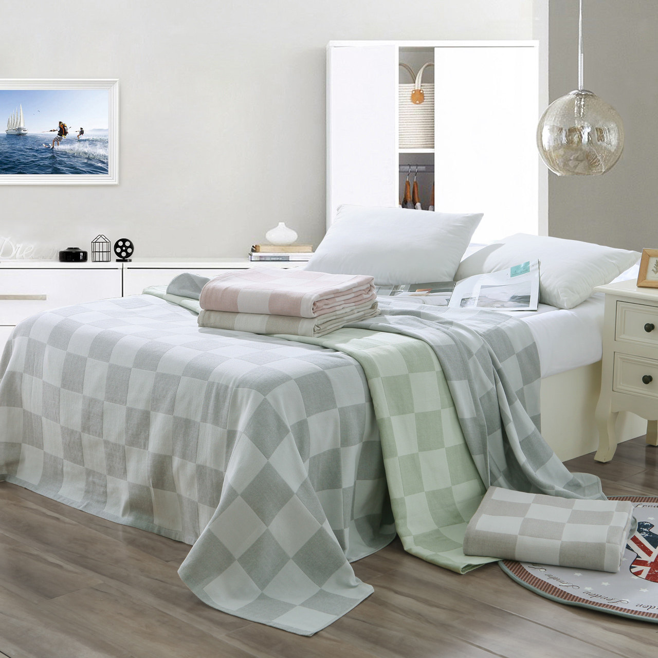 金号毛巾被纯棉A类双层纱布盖毯床单绗缝夏凉多功能毯办公空调毯