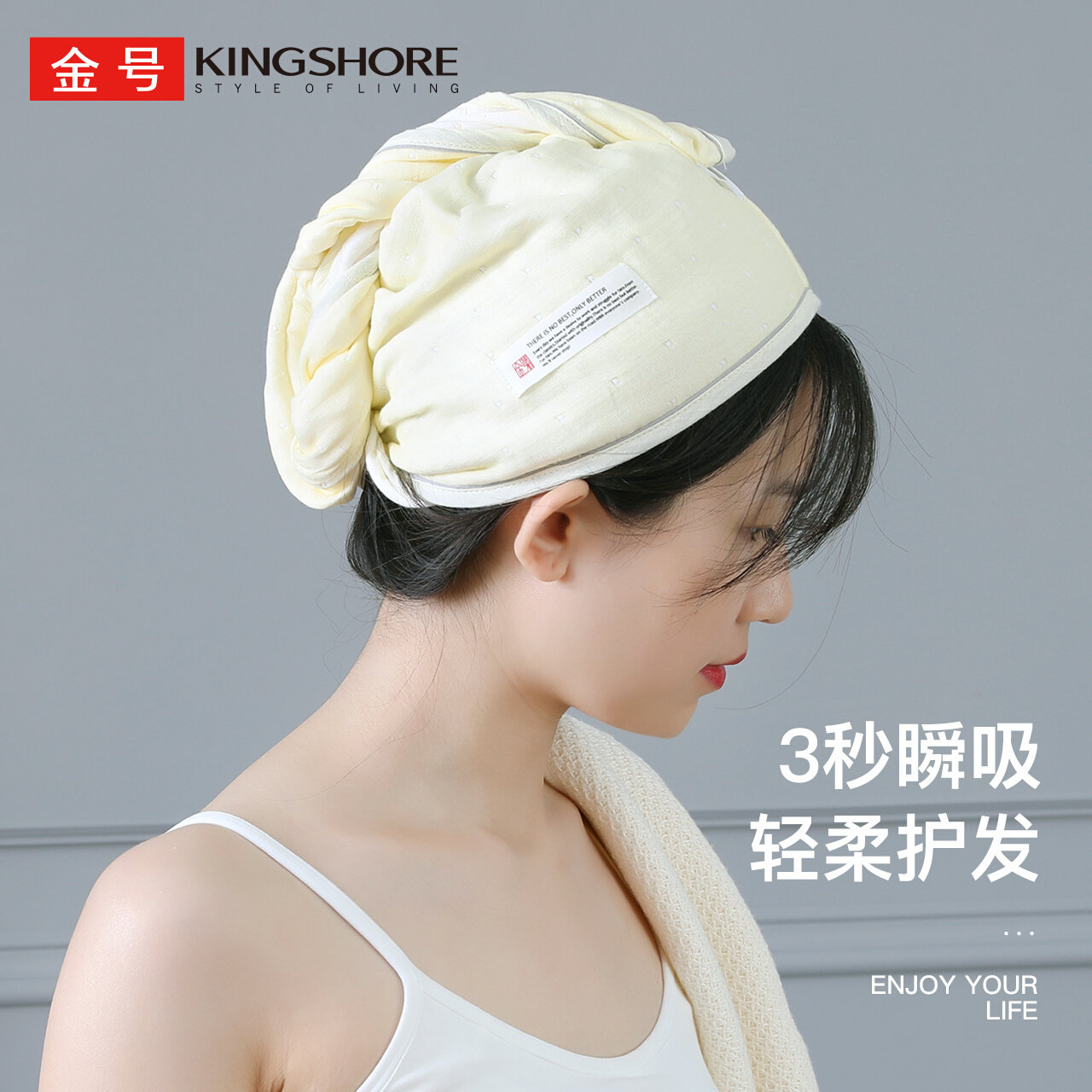 2条金号纯棉浴帽 五层纱布干发帽干发毛巾 吸水包头裹头洗浴速干