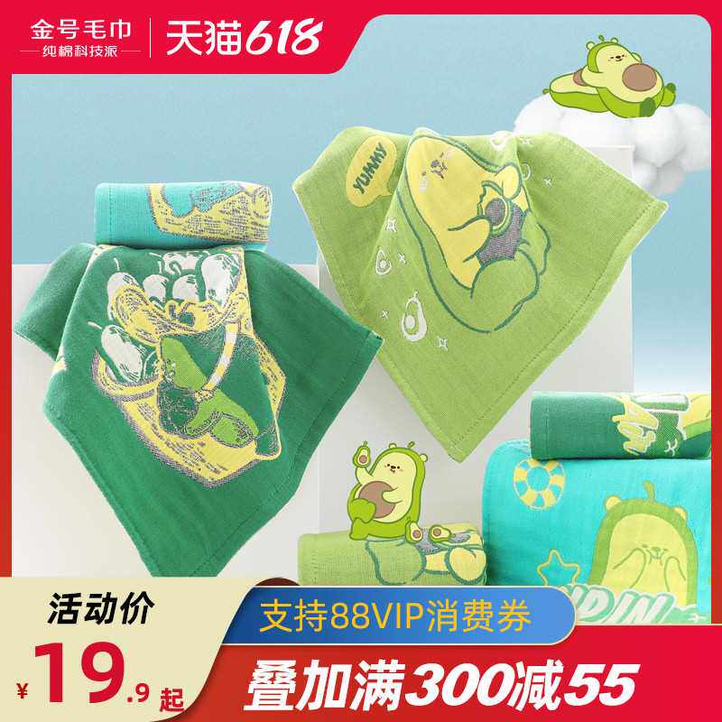 【2条】金号牛油果熊纯棉童巾毛巾 全棉多层泡泡纱布面巾洗脸巾