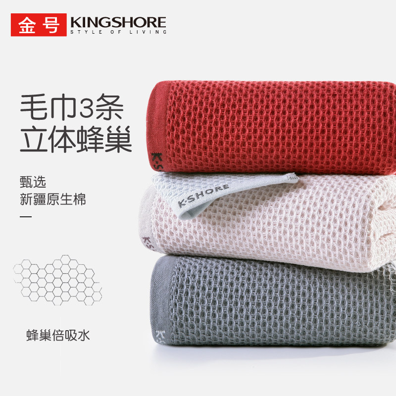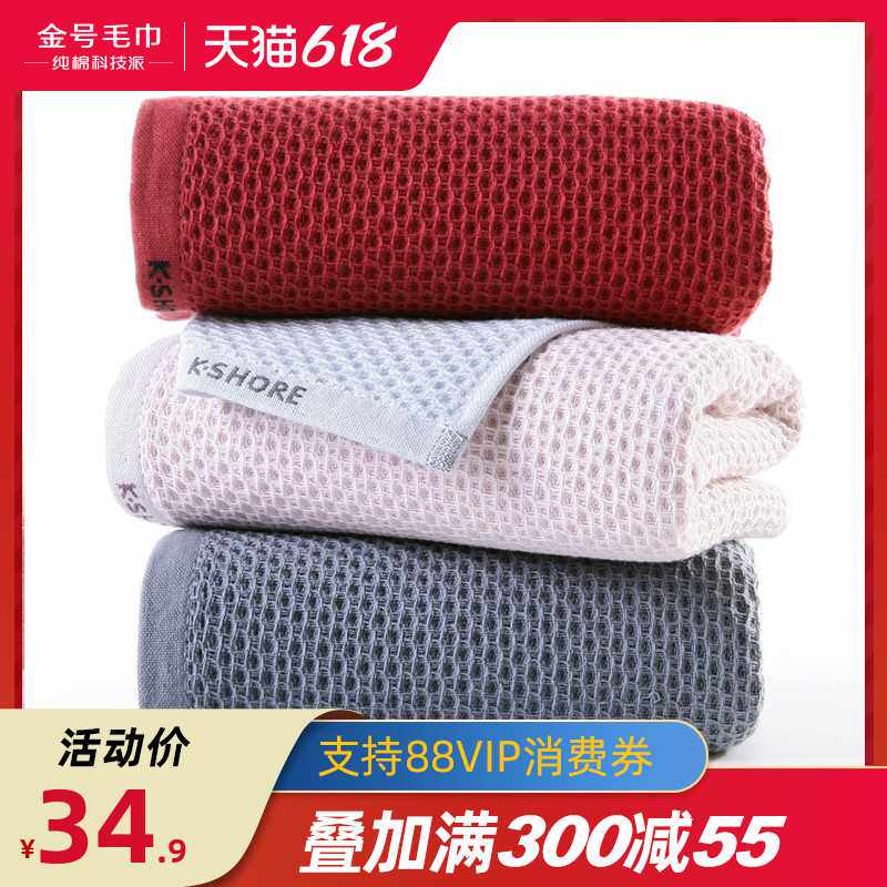 3条金号毛巾纯棉纱布蜂巢蜂窝全棉浴巾洗脸洗澡家用成人吸水速干