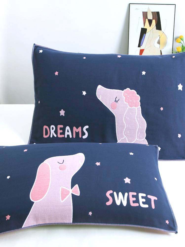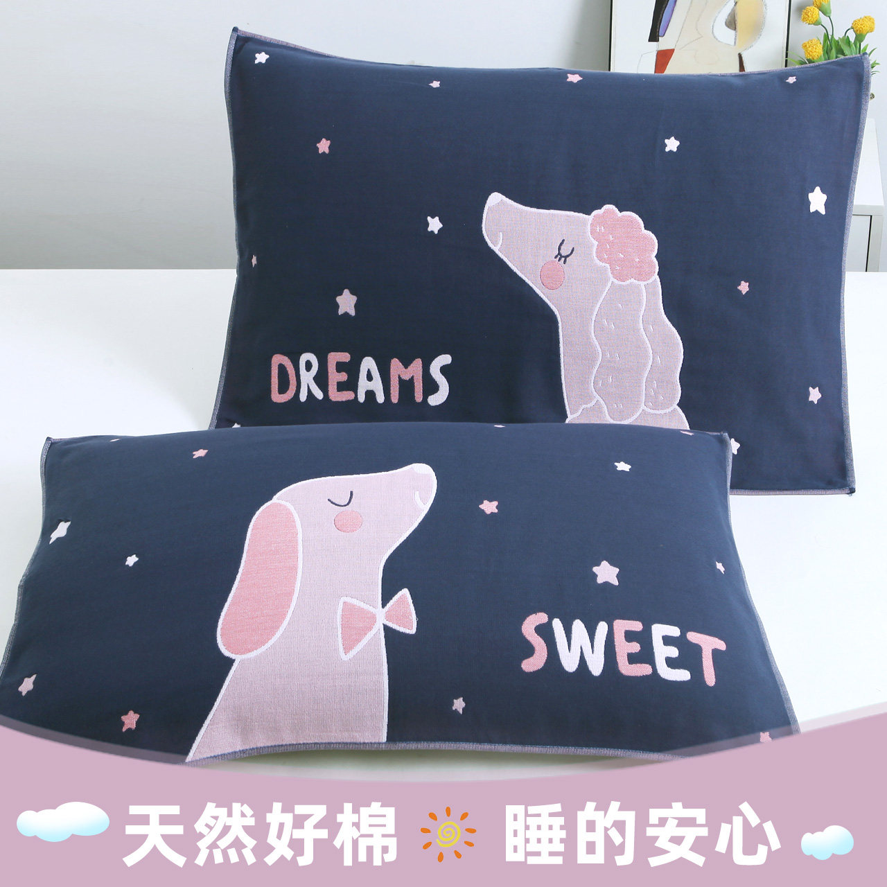 金号枕巾清新田园风双层纱布无捻床上用品 卡通纯棉枕巾一对包邮
