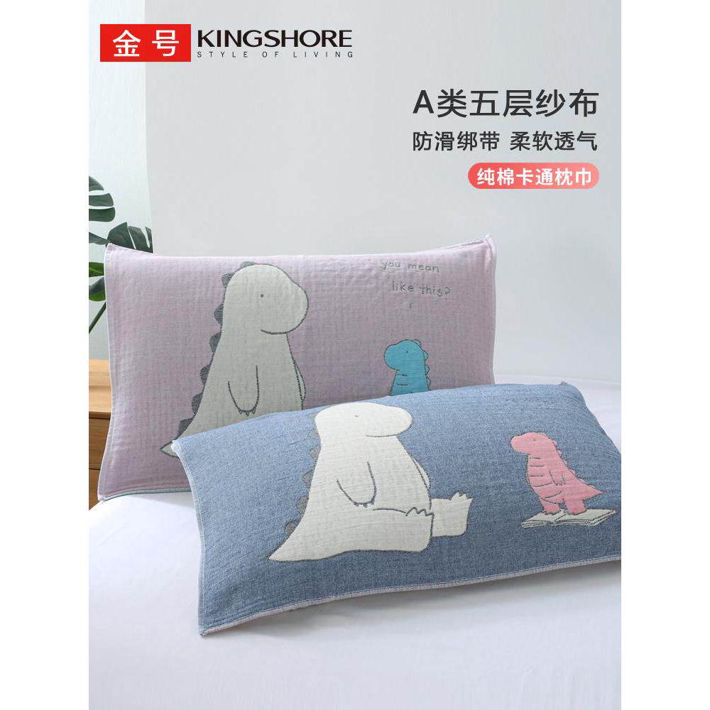 金号枕巾纯五层纱布一对装单人枕头巾柔软透气全A类防滑绑带
