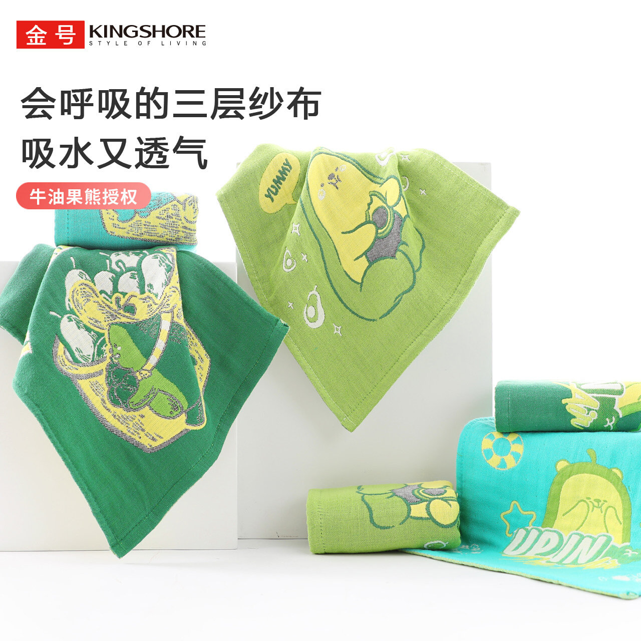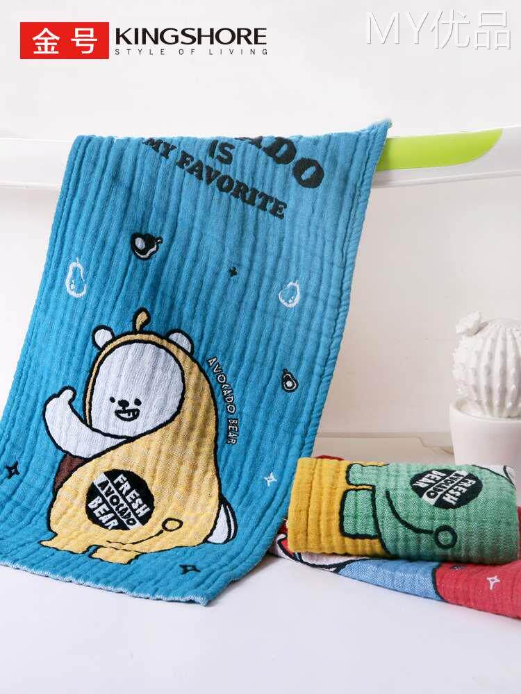 3条金号毛巾牛油果熊纯棉多层纱布宝宝童巾全棉卡通洗脸洗手面巾