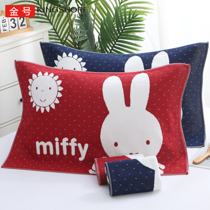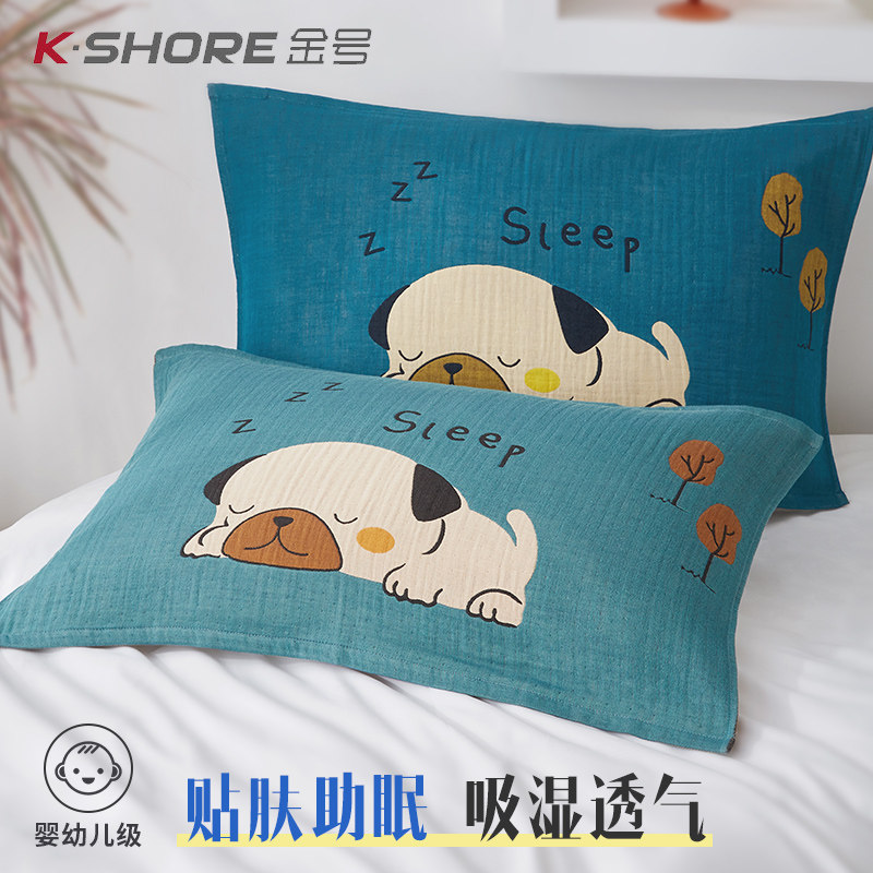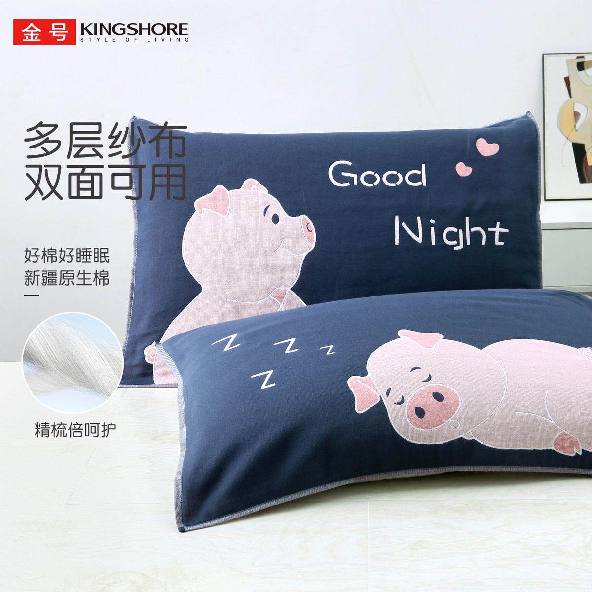 KING SHORE/金号米菲 纯棉枕巾两条装 双层纱布无捻柔软 情侣款式