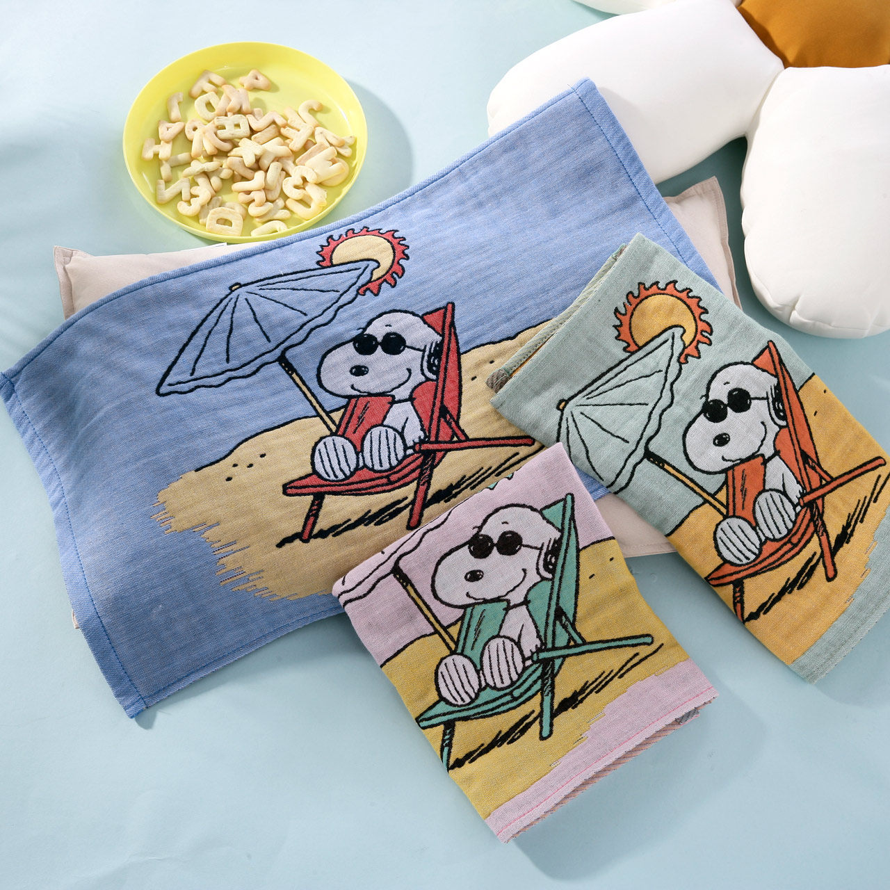 金号/史努比三件套纯棉毛浴巾方巾毛巾浴巾各一 双层纱布无捻纱布