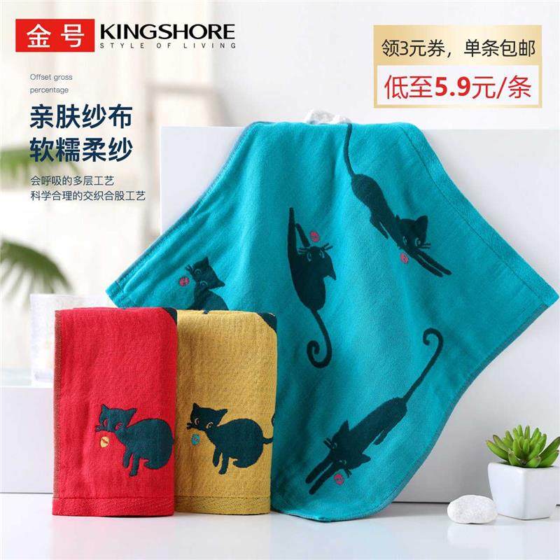 2条金号全棉纱布双面成人大人用毛巾柔软吸水纯棉洗脸巾家用情侣