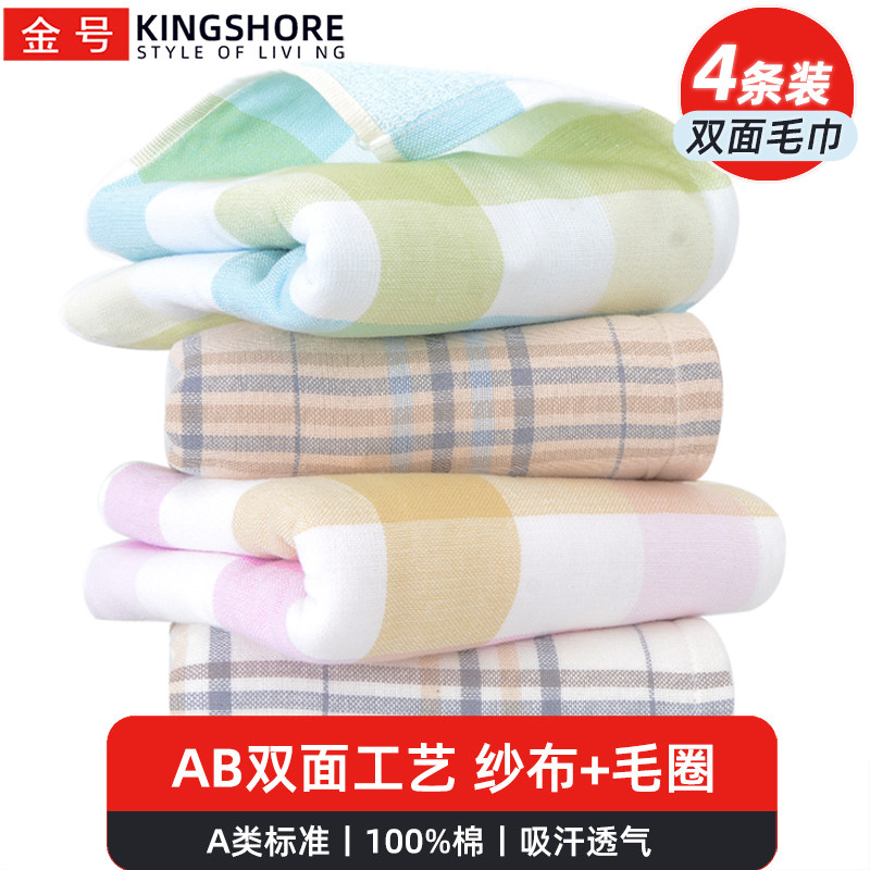金号毛巾柔软全棉面巾纱布格子纯棉吸水速干不掉毛洗脸家用成人