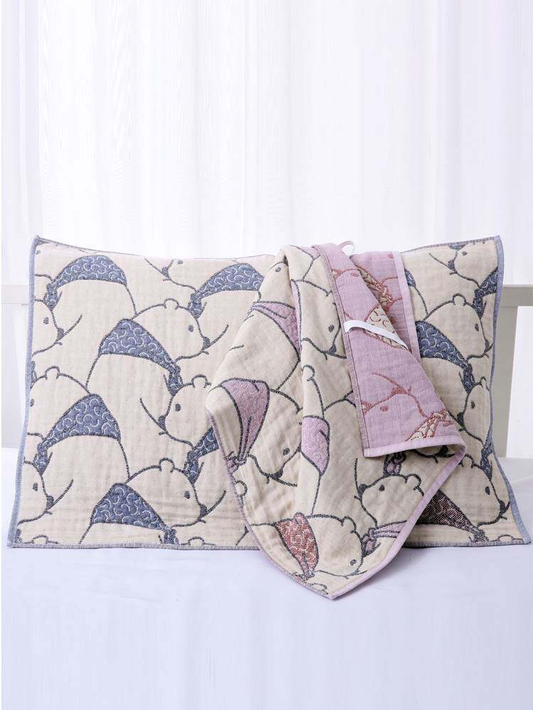 金号枕巾纯棉A类双层纱布无捻全棉枕头巾垫巾格子卡通提花