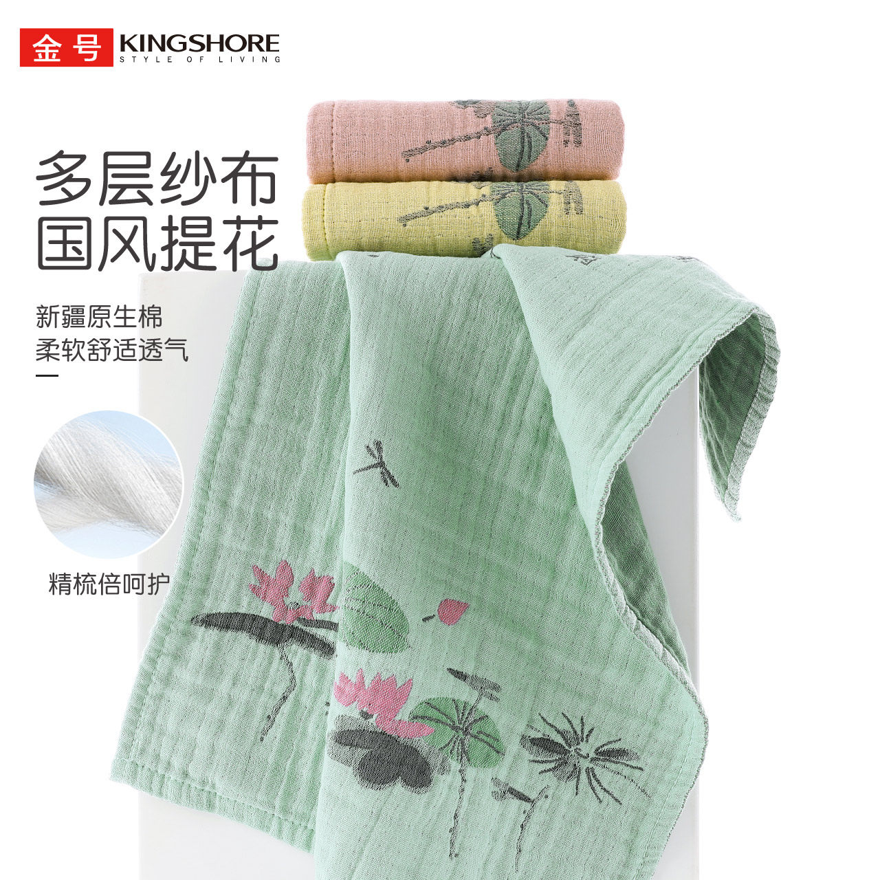 金号毛巾A类全棉5层泡泡纱布面巾纯棉国风吸水透气速干成人洗脸