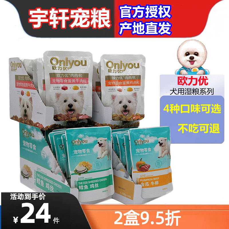 欧力优狗狗湿粮罐头95g*12包泰迪博美比熊金毛狗零食拌饭肉粒包