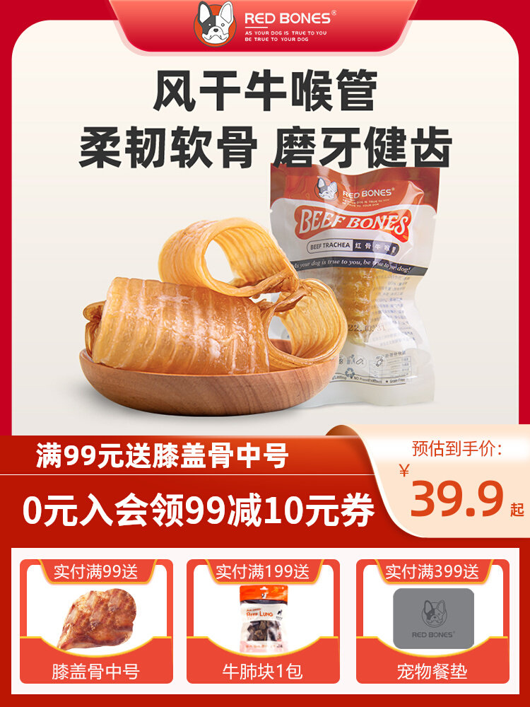 RedBones红骨风干牛喉管狗狗磨牙零食金毛泰迪柯基补钙洁齿磨牙棒