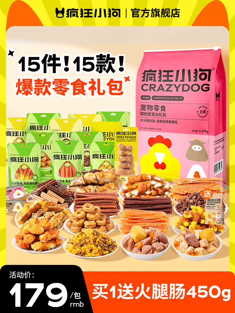疯狂小狗狗零食大礼包宠物小型犬鸡鸭肉干泰迪柯基冻干罐头磨牙棒