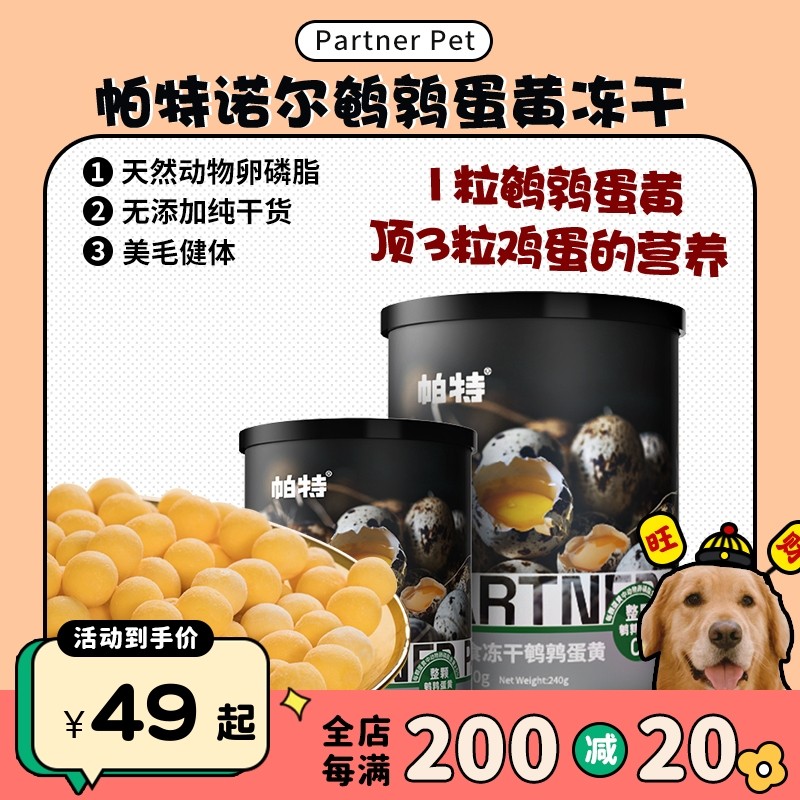 【旺财】好次!帕特冻干鹌鹑蛋黄卵磷脂爆毛增肥猫狗通用零食