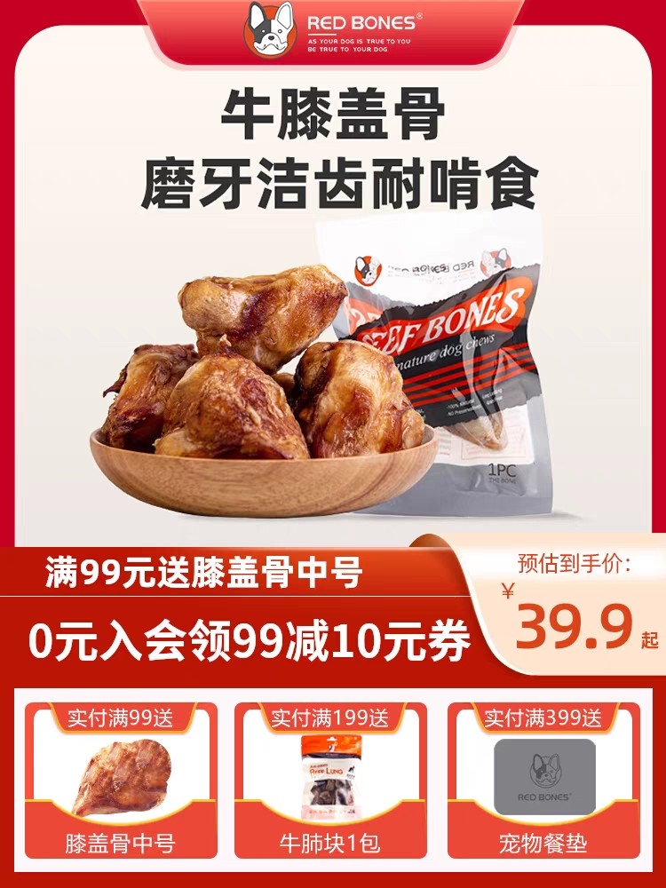 RedBones红骨风干牛膝盖骨磨牙棒狗狗零食小中大型泰迪洁齿补钙
