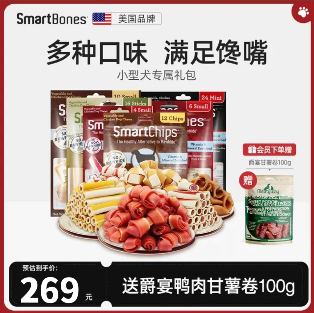 SmartBones狗零食大礼包咬胶洁齿骨狗狗磨牙棒小型犬宠物洁齿食用