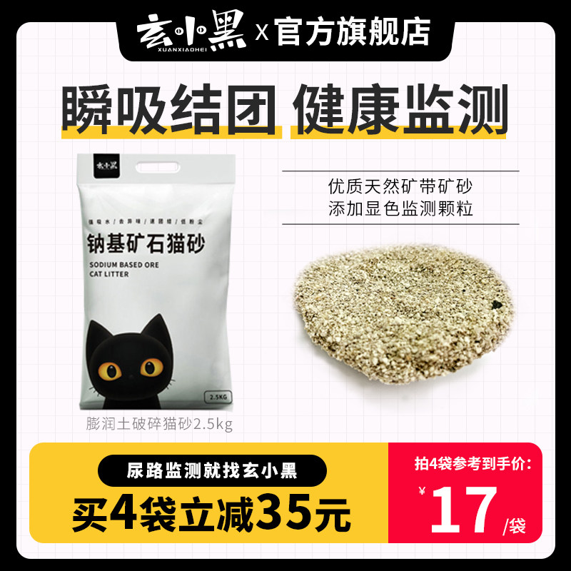 玄小黑膨润土猫砂天然自检除臭无尘不粘底吸水结团猫沙2.5kg包邮