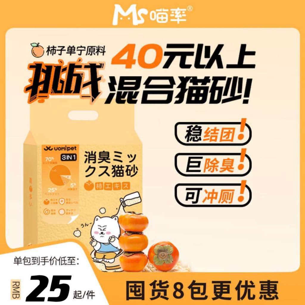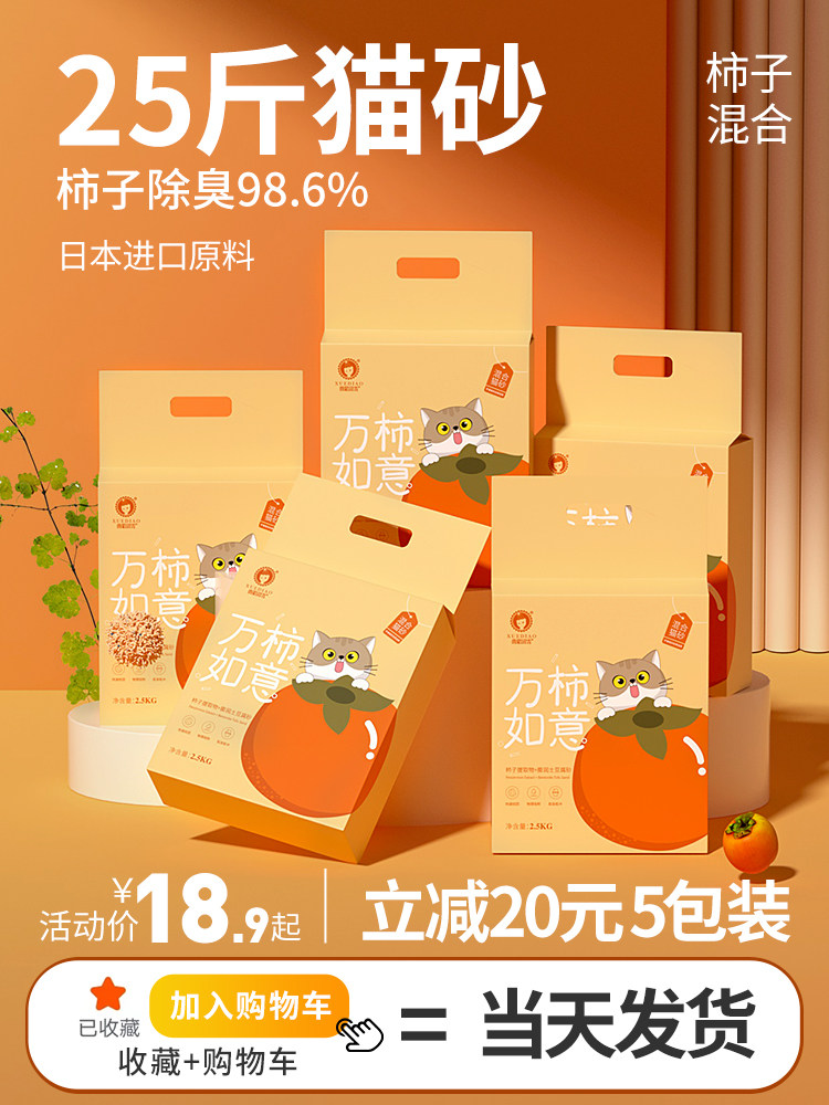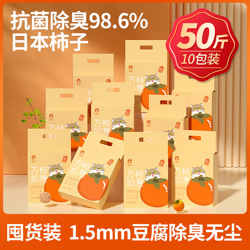 喵率柿子单宁混合猫砂豆腐砂除臭无尘膨润土包邮20公斤官方旗舰店