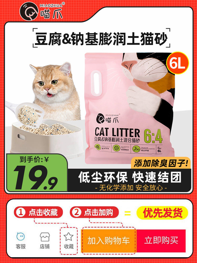 不打烊混合猫砂豆腐砂除臭几近无尘膨润土猫沙实惠装10kg20省包邮