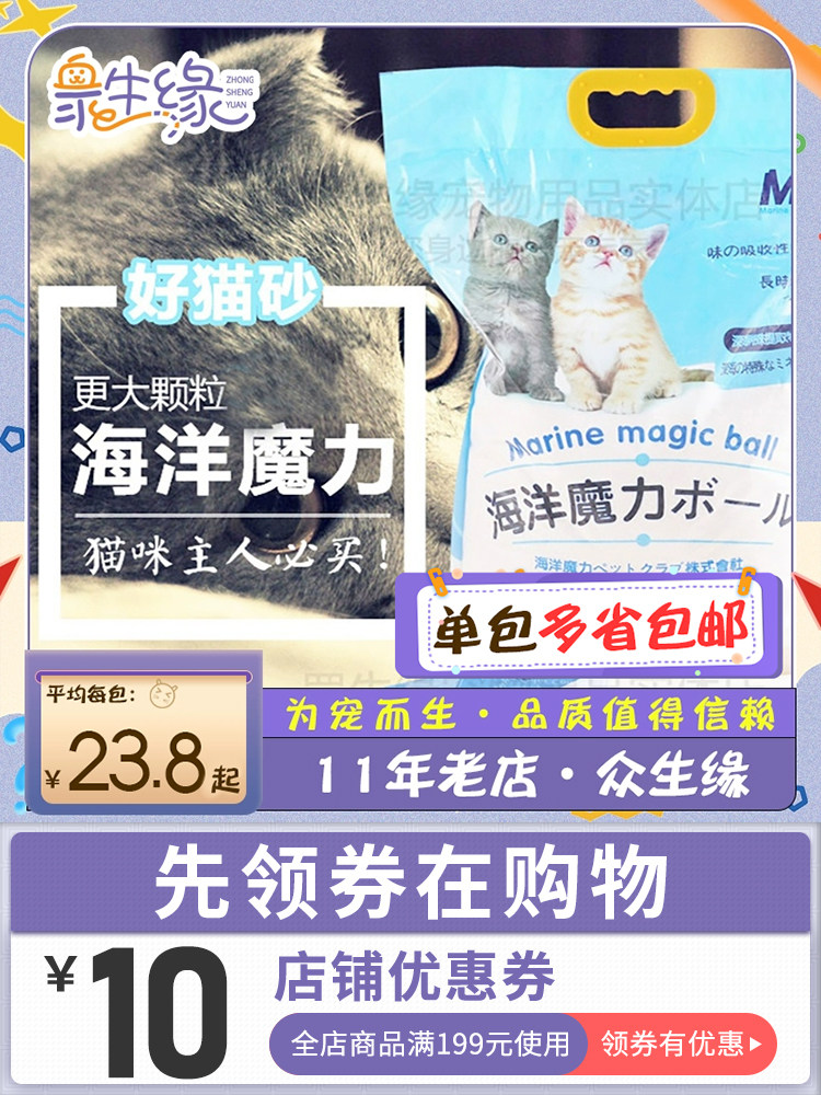 好用的海洋魔力膨润土猫砂10L结团强力吸水强除臭少尘7.5公斤