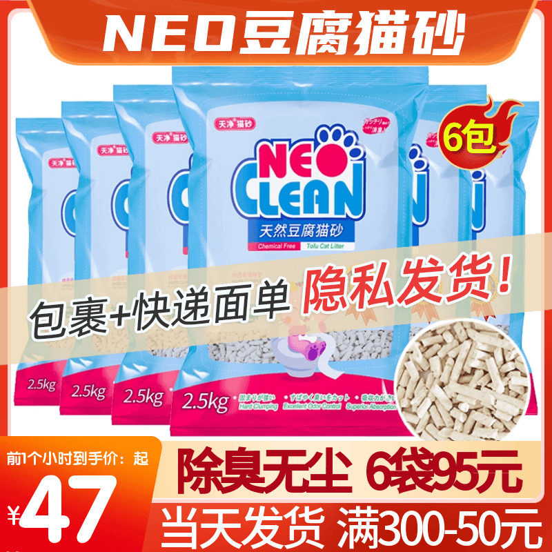 天净neo豆腐猫砂原味6L*6包 除臭结团无尘植物猫沙豆腐砂10kg20斤