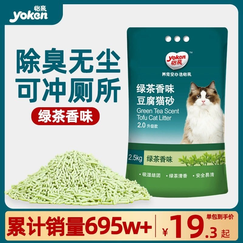 怡亲 猫砂绿茶豆腐砂除臭膨润土混合猫砂伴侣猫咪用品冲厕所2.5kg
