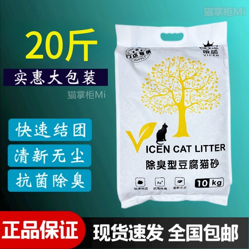 正品唯晨豆腐猫砂10kg大包奶香猫沙绿茶除臭无尘可快速结团20斤