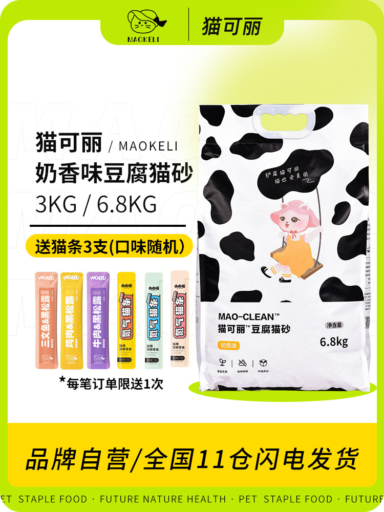 猫可丽奶香味豆腐猫砂除臭无尘可冲马桶纯植物豆腐砂6.8公斤幼猫