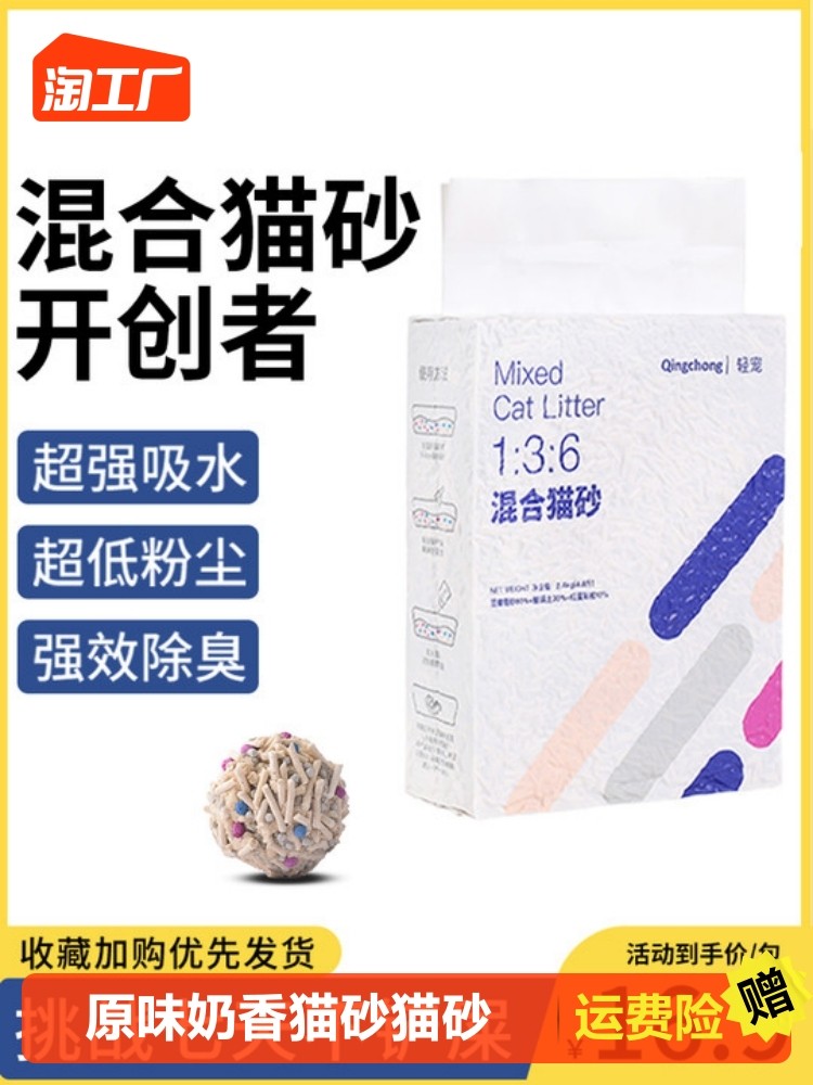 轻宠奶香味猫砂除臭低粉尘豆腐砂混合膨润土20公斤包邮原味