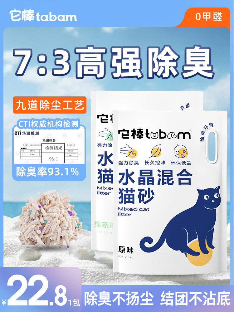 豆腐猫砂混合型10膨润土5除无尘臭2.5公斤包邮活性炭20沙可冲马桶