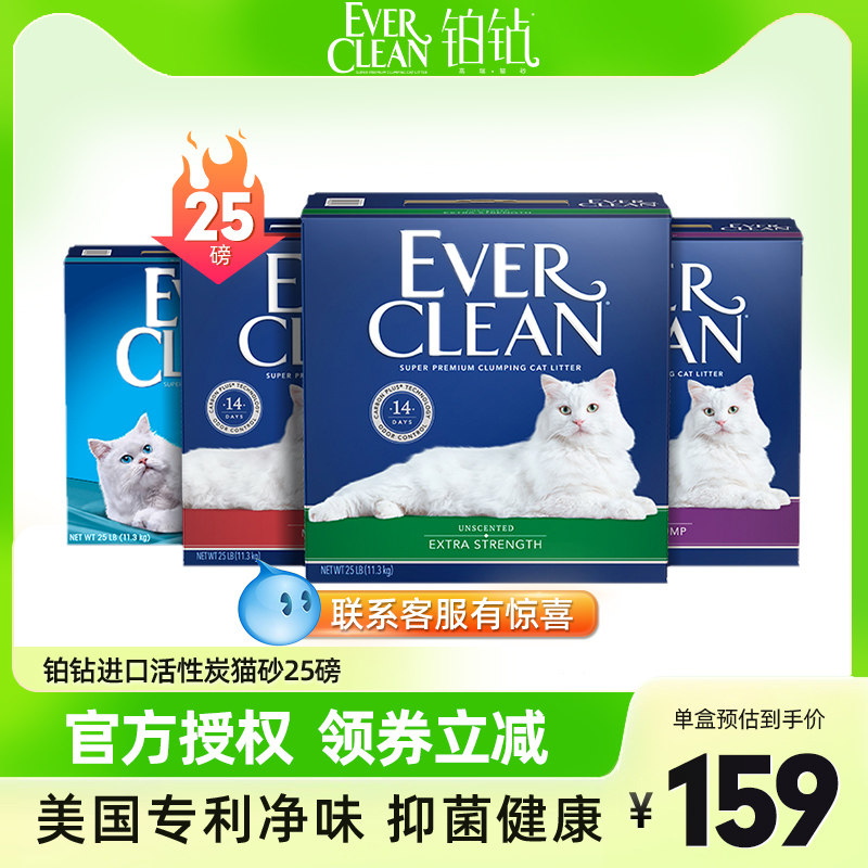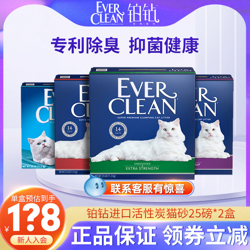 铂钻猫砂EverClean膨润土矿砂进口25磅除臭活性炭砂50磅满20公斤