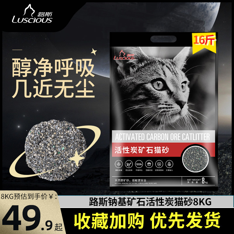 路斯膨润土猫砂活性炭矿石矿砂猫沙非豆腐除臭低尘满10kg20斤包邮