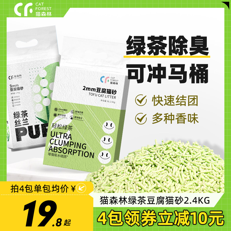 猫森林猫砂豆腐砂绿茶丝兰除臭几近无尘幼猫猫沙满10公斤20斤包邮