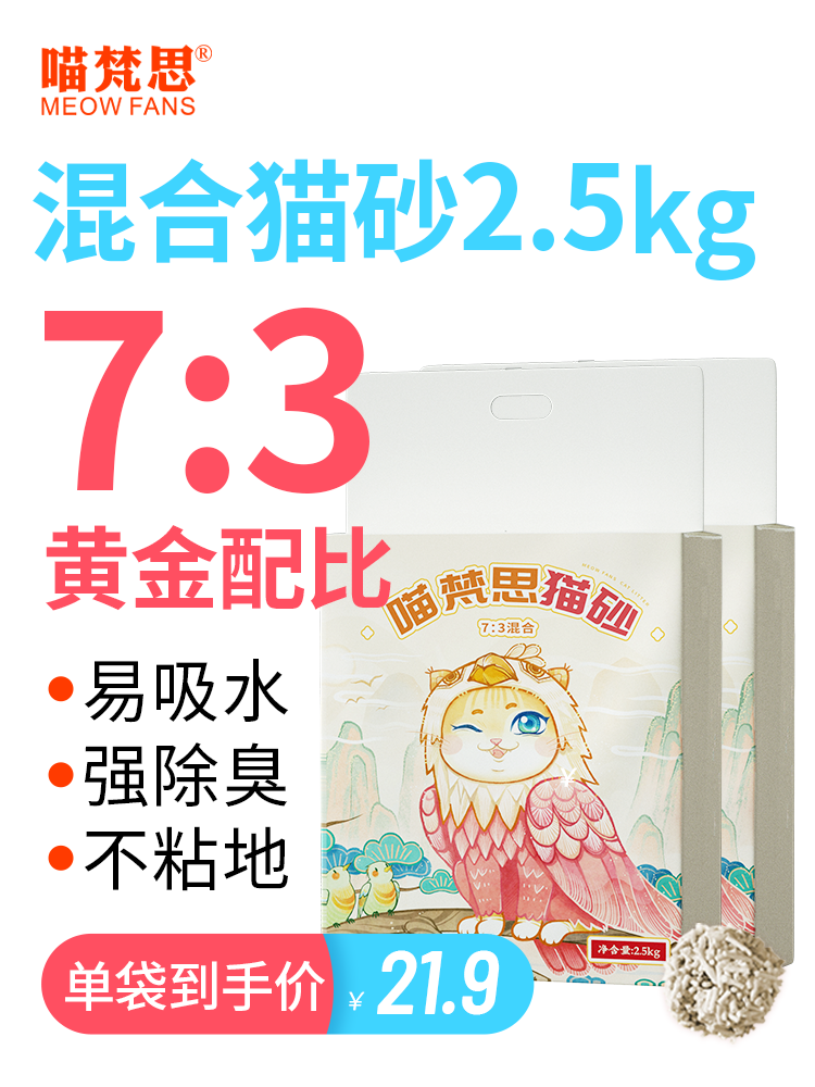 喵梵思 砂雕猫砂混合砂2.5KG豆腐膨润土原味除臭吸水无尘猫砂